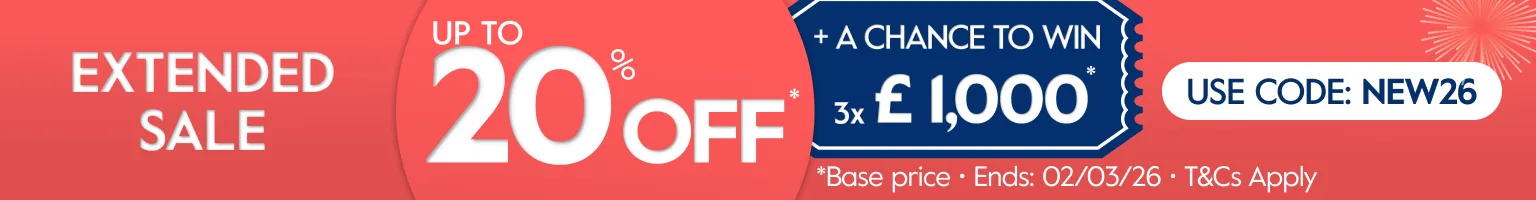 * Discount based on the premium amount: 5% off premiums £0-£49, 10% off £50-£249, & 20% off £250+. Discount excludes any premium generated to cover medical conditions or optional extras. This offer cannot be used in conjunction with any other offer. Discount ends 23:59 on 02/03/2026. All quotes from 19/12/2025 to 23:59 on 02/03/2026 will be included in the prize draw. For more information, see the full Terms and Conditions.
